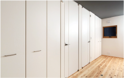 1921年(大正10年)に山田製材所として創業。当初は「木箱」や「仕組板(梱包材)」の製造からスタートし、住宅用の建材分野へと転換していきました。現在はハウスメーカー・建材メーカー・大型工務店向けの建具や収納扉、玄関収納をはじめとする木質系住宅内装用の各種部材などを製造しており、徹底した生産管理と品質管理で多品種・小ロットの発注にも迅速・正確に対応しています。